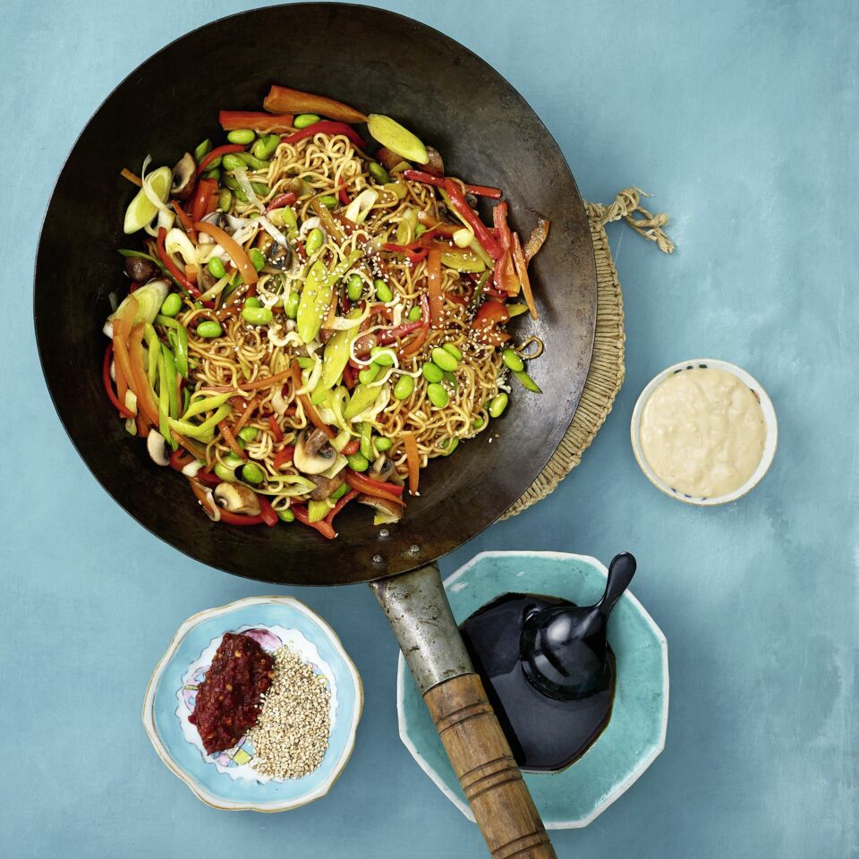 Mie-Nudel-Pfanne mit buntem Gemüse