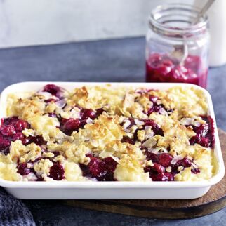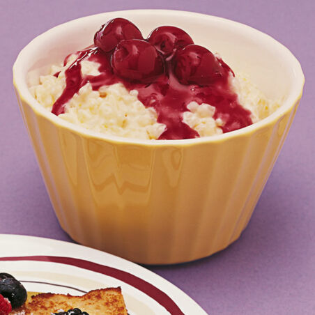 Kirschen abtropfen lassen, Saft dabei auffangen und mit Kirschsaft auf 500 ml auffüllen. Stärke und 1 EL Zucker mit 5 EL Saft anrühren. Restlichen Saft aufkochen, Stärke einrühren und köcheln lassen, bis die Sauce gebunden ist. Kirschen zugeben.