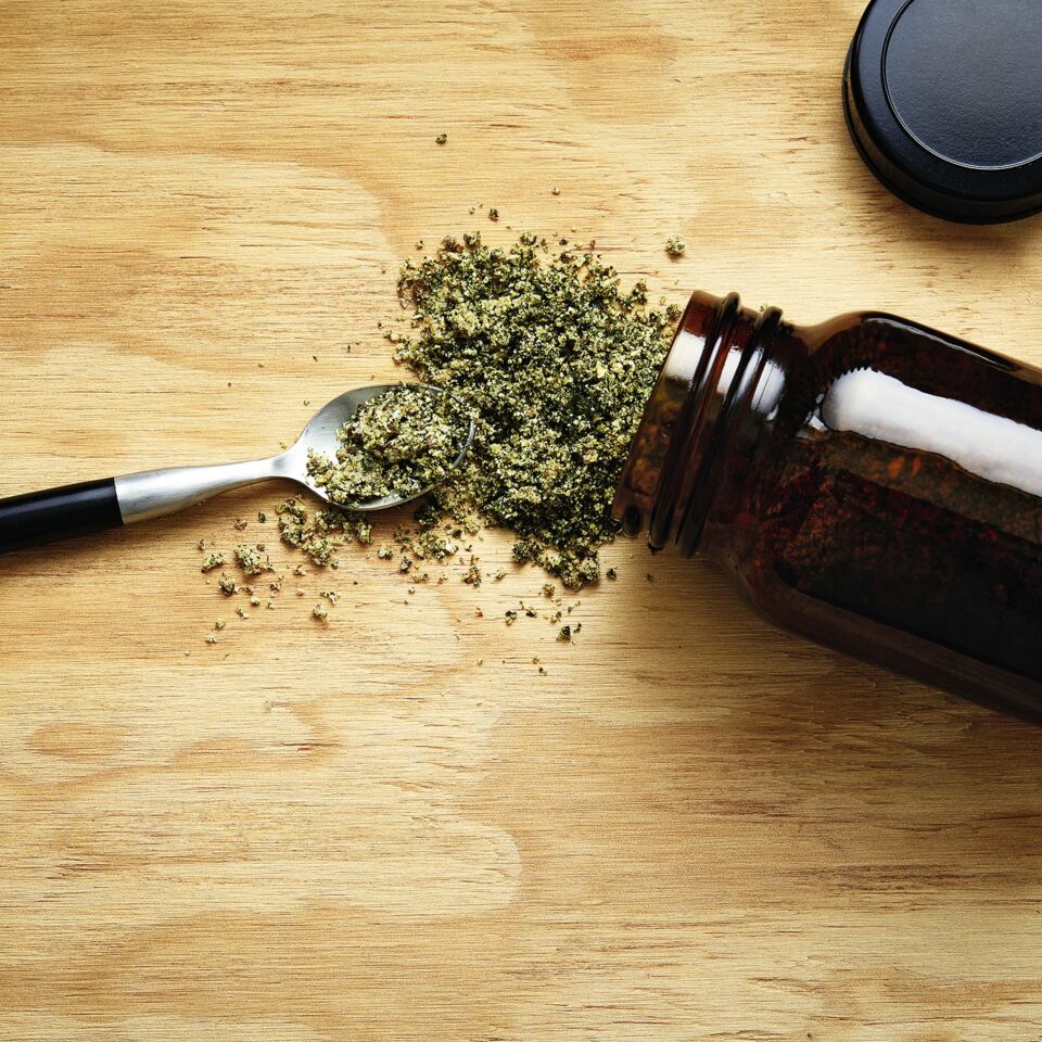 Dieser Mix hat es in sich: 1 EL deckt die Hälfte des täglichen Selenbedarfs und 12 % des täglichen Jodbedarfs eines Erwachsenen. Im Mix sind außerdem Eisen, Magnesium, Kalzium und reichlich B-Vitamine enthalten. Streue den Mix am besten 1-2-mal täglich auf Salate oder mische ihn in Dips und Aufstriche. Da die B-Vitamine nicht hitzestabil und sehr lichtempfindlich sind, sollte der Mix nicht erhitzt werden.