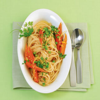 Auch den Gemüse-Klassiker mit Erbsen und Möhren kann man im Ofen in der Alufolie garen.