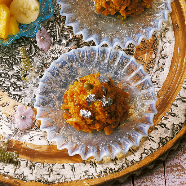 Das Ghee in einer Pfanne erhitzen. Den Möhrenpudding hineingießen und darin etwa 10 Min. bei mittlerer Hitze rösten.
