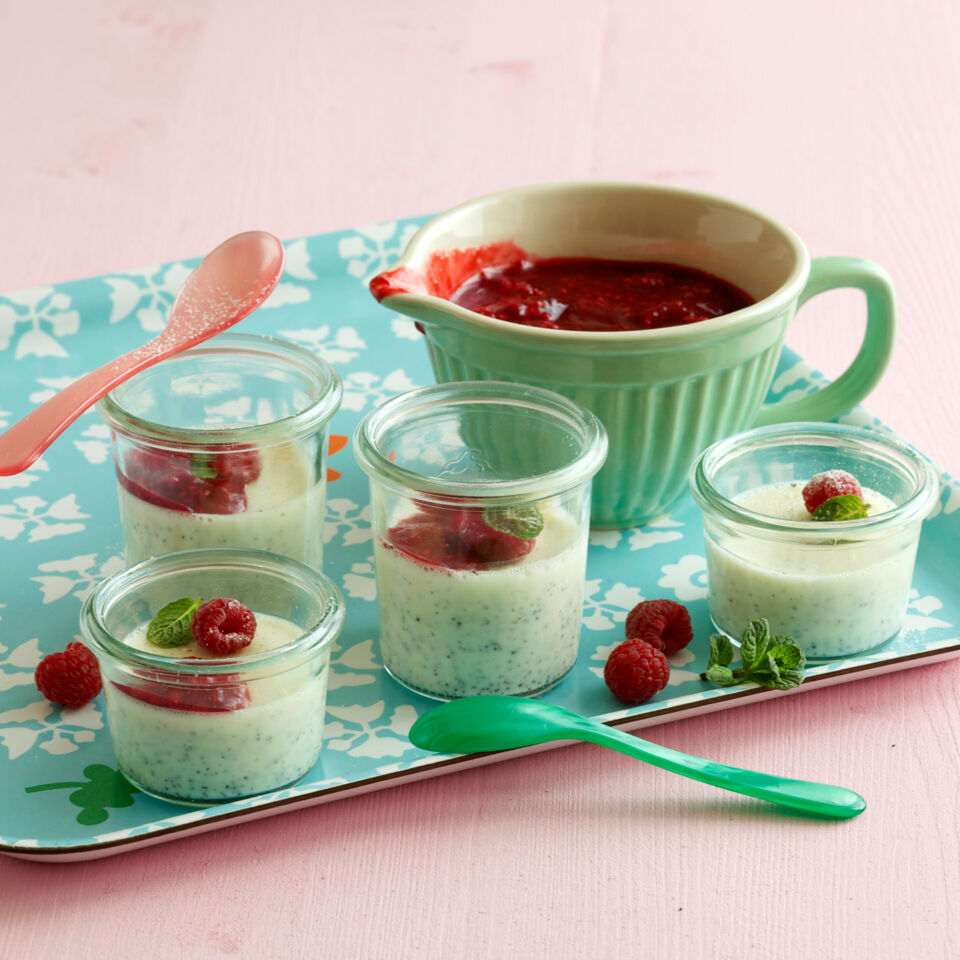 Die klassische italienische Panna cotta wird hier mit gemahlenem Mohn verfeinert. Wer die Creme aus den Formen stürzen möchte, sollte diese zuvor kalt ausspülen.