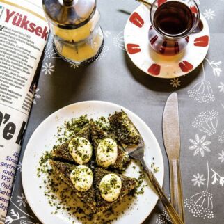 Am nächsten Tag für den Teig das Mehl in eine Schüssel sieben, eine Mulde hineindrücken und die Hefe hineinbröckeln. Mit 125 ml Milch, 1 TL Zucker und etwas Mehl vom Rand verrühren. Den Vorteig zugedeckt ca. 15 Min. gehen lassen. Dann restliche Milch, übrigen Zucker, Salz, Butter in Flöckchen und Eier zum Vorteig geben. Alles zuerst mit den Knethaken des Handrührgeräts, dann mit den Händen glatt kneten. Noch ca. 30 Min. gehen lassen.