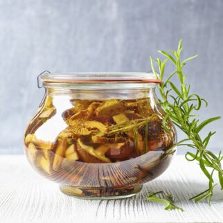 Mozzarella in Thymian-Öl passt zu Tomaten und Basilikum, in den Blattsalat, zu Nudeln oder auf den Antipasti-Teller. Übriges Öl aus den Gläsern kann für eine Salatsauce verwendet werden.