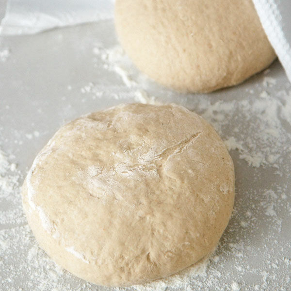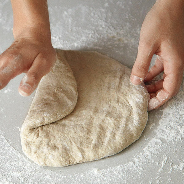Die Hefe in einer Schüssel in der Buttermilch auflösen (falls die Buttermilch kühlschrankkalt ist, zuvor kurz lauwarm erhitzen). Mit dem Sauerteig verrühren, dann die Mehlsorten und zum Schluss das Salz zugeben. Alles gut unterarbeiten. Den Teig 8-10 Min. in der Küchenmaschine (4 Min. auf langsamer, 4 Min. auf schneller Stufe) oder von Hand durchkneten. Danach auf die bemehlte Arbeitsfläche geben und abgedeckt 20-30 Min. gehen lassen.