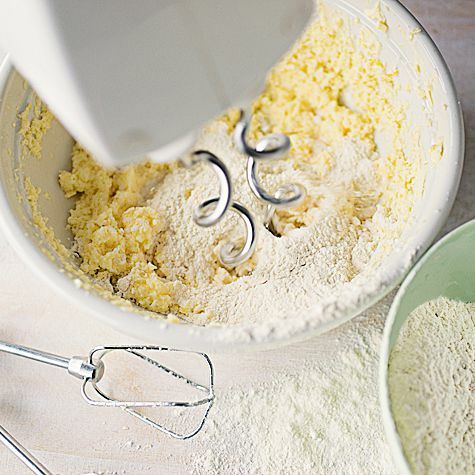 Anschließend das Mehl und 1 Prise Salz zur Butter-Ei-Masse geben und alle Zutaten kurz mit den Knethaken des Handrührgeräts durcharbeiten.