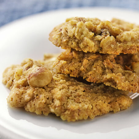 Mit Hilfe von zwei Teelöffeln vom Teig nach und nach etwas abnehmen, als kleine Häufchen (etwa 2 cm Ø) aufs Blech setzen, zu runden flachen Talern drücken. Im Ofen (Mitte) etwa 15 Min. backen.