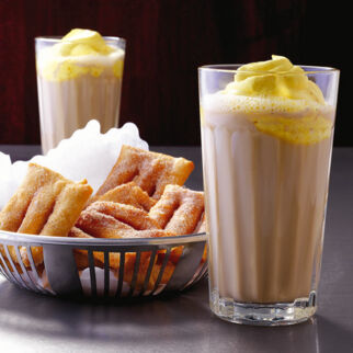 Diesen süßen Milchkaffee mit Haselnussschuss können Sie ganz nach Tagesform einfach aus dem Becher oder stilvoll aus der Cocktailschale genießen.