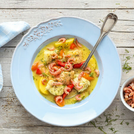 Frisch gefischt und schon auf Ihrem Tisch! Dieser Eintopf mit Krabben bringt mit Krabben und Fisch das Meer bis zu Ihnen nach Hause.