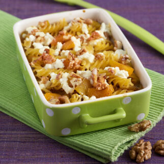 Ein Küchenschatz aus Omas Zeiten. Der süße Nudelauflauf wird mit Kirschen kredenzt und mit Kakao-Bröseln im Ofen gebacken. Unbedingt warm genießen!