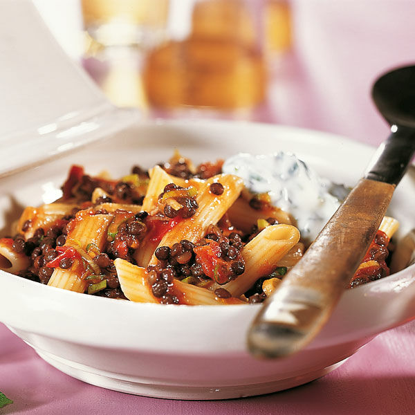Nudeln mit Linsenragout