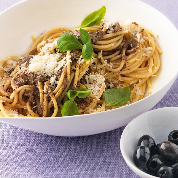 Neben dem Basilikumpesto und dem Pesto aus getrockneten Tomaten gehört das Olivenpesto zu den Klassikern der italienischen Pastaküche.