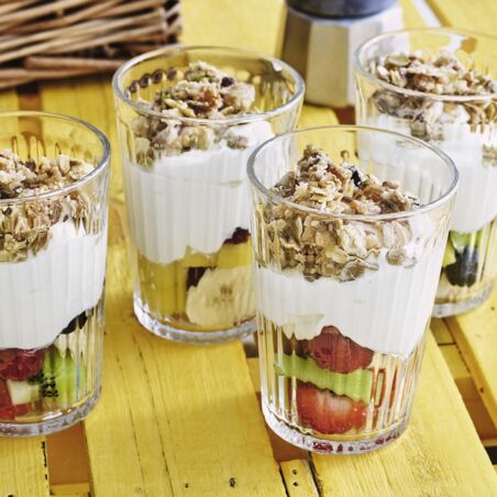 Vitamine am Morgen vertreiben Kummer und Sorgen - erst recht in Kombination mit Knuspermüsli und Joghurtcreme.