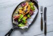 Kürbisspalten und Maiskörner auf Teller oder in Pfännchen verteilen, etwas Sellerie-Apfel-Konfitüre dazwischensetzen (den Rest separat dazu servieren) und mit Mangold dekorieren. Mit den Kürbiskernen bestreuen.