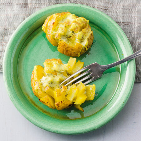 Das Basilikumpesto dringt während des Garens sanft in die Kartoffel ein und verleiht ihr ein unvergessliches Aroma von Mittelmeer.