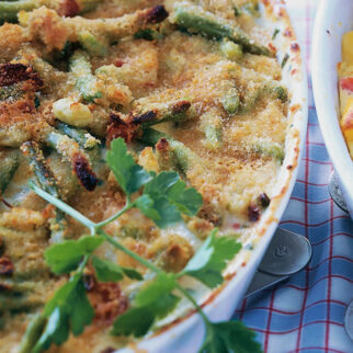 Eine gebackene Ka rtoffel, mit Salz und Butter verfeinert, ist allein schon eine Köstlichkeit. Mit grünen Bohnen, Speck und Sahne kommt sie ganz groß raus.