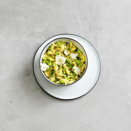 Eine One Pot Pasta vom Feinsten mit coolen Hörnchen-Nudeln. Dank TK-Erbsen ist dieses Schmankerl jederzeit einsatzbereit.
