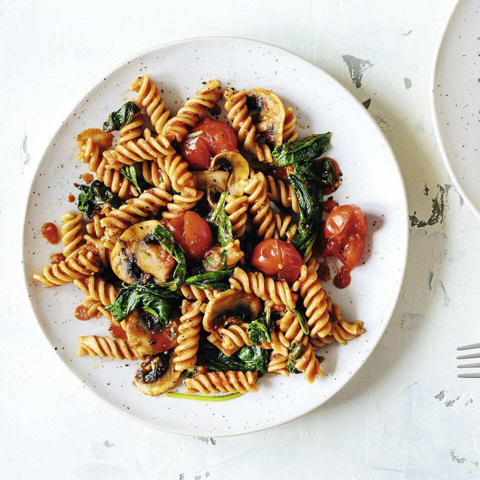 Gutes und Gesundes kann so einfach sein. Wie zum Beispiel diese One Pot Pasta mit Pilzen und Spinat!