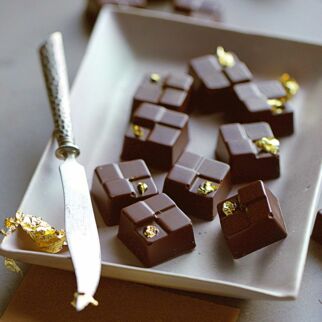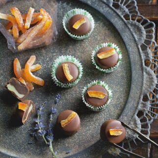 Wunderbar herb, mit einer leicht bitteren Orangennote, schmeckt die Füllung dieser edlen Pralinen. Und ihre dunklen Hüllen werden natürlich selber gegossen!