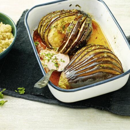 Auberginen wie aus Tausendundeiner Nacht. Dazu reichen wir am liebsten Couscous oder frisches Fladenbrot.
