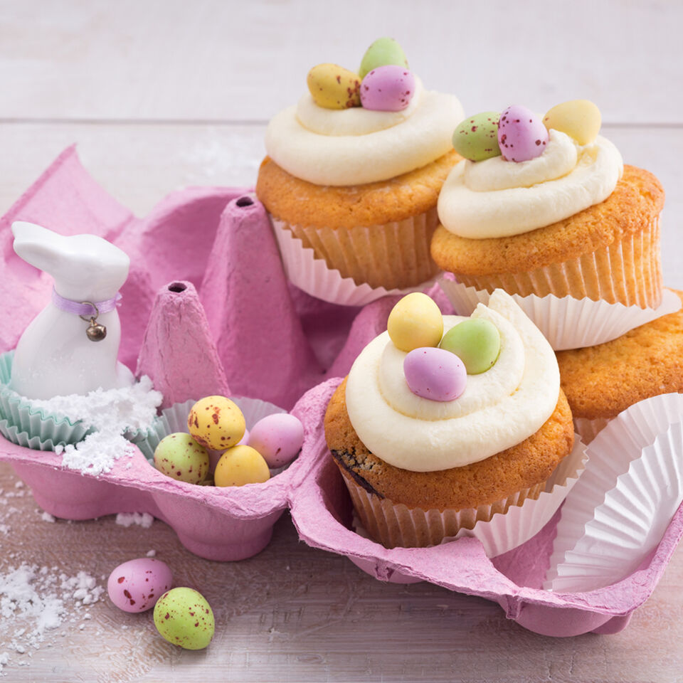 Osternest mit Schuss: Eierlikör macht diese süßen Oster-Cupcakes besonders saftig.