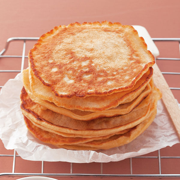 1 EL Öl in einer großen Pfanne erhitzen. 3 kleine Teigportionen in die Pfanne gießen. Bei mittlerer Hitze von jeder Seite 3-4 Min. goldbraun braten. Dabei die Pfannkuchen erst wenden, wenn sich auf der Oberfläche Blasen gebildet haben. Aus der Pfanne nehmen, erneut 1 EL Öl erhitzen und die restlichen Pfannkuchen ausbacken.