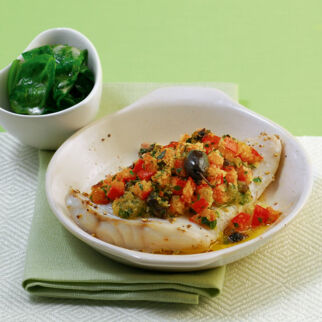 Zum panierten Fischfilet schmeckt auch besonders gut Remoulade oder ein Dip aus Sauerrahm, gemischten Kräutern, Senf und Gewürzen.