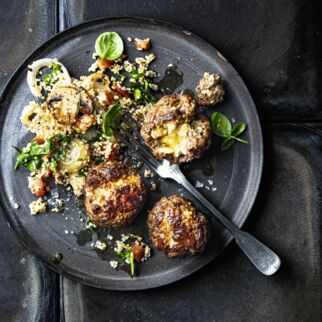Die Paprika und die Zwiebeln in die Pfanne geben, salzen und bei mittlerer bis großer Hitze unter häufigem Rühren in ca. 5 Min. bissfest garen. Das Gemüse abschmecken, die Hackbällchen darauflegen und zugedeckt richtig heiß werden lassen. Den Schafskäse zerkrümeln und vor dem Servieren mit den beiseitegelegten Petersilienblättern auf die Paprika-Hackbällchen-Pfanne streuen. Dazu schmeckt Fladenbrot.