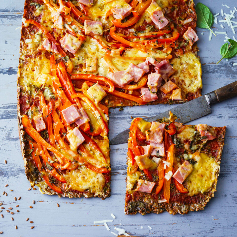 Ein Pizza-Rezept ohne Mehl? Oh ja. Hier wird der "Teig" aus Leinsamen, Parmesan und Eiern zubereitet. Fehlen nur noch Ihre Lieblingszutaten für den Belag. Mmmhhh.