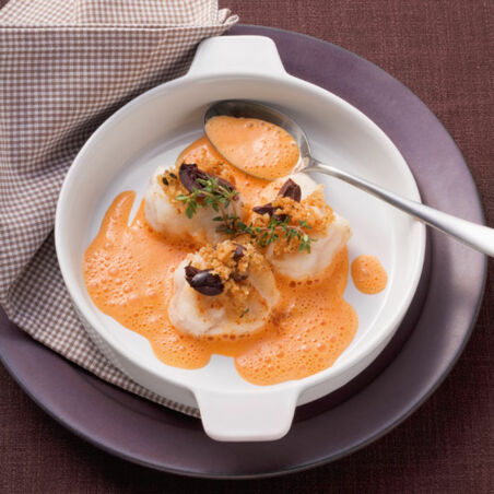 Paprikasauce für Seeteufel mit Thymianbröseln