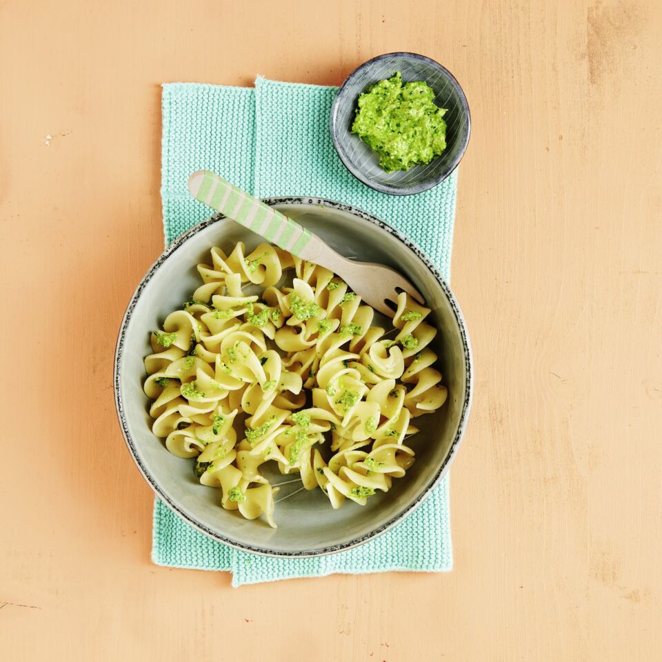 Diese Nudeln mit selbst gemachtem Pesto schmecken Groß und Klein gleichermaßen gut.