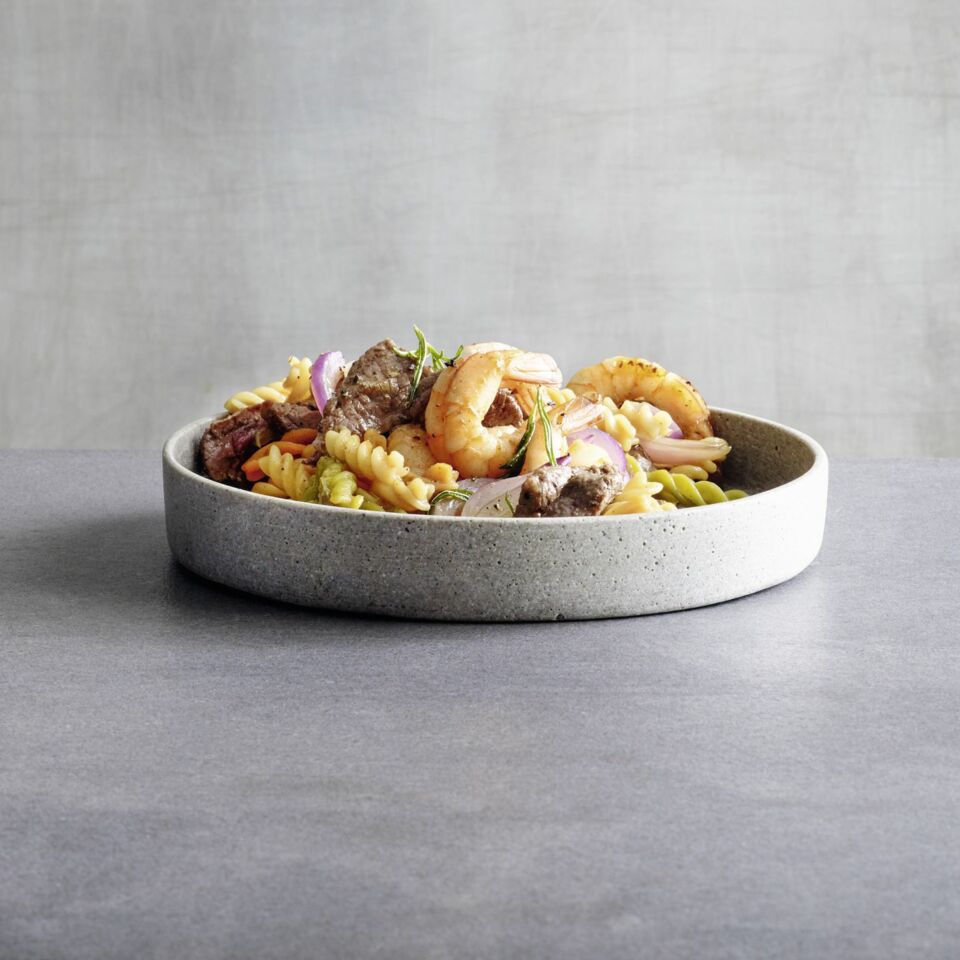 Hier kommt die Kombi aus Garnelen und Steak als One-Pot-Pasta auf den Teller. Perfekt zum Gäste beeindrucken!