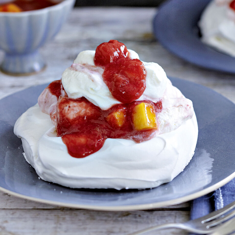 Benannt sind diese wolkenähnliche Leckerbissen nach der russischen Tänzerin Anna Pavolova. Sie sehen aus wie kleine Wölkchen und schmecken einfach himmlisch. Die fluffigen Baisers brauchen zwar etwas Zeit im Ofen, aber mit Rhabarberkompott und Waldmeistersauce sind sie ein Gedicht.