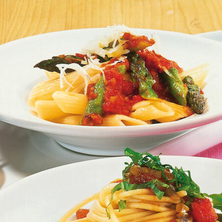 Wenn Sie dieses Pastagericht mit Spargel und viel Gemüse zum ersten Mal in der Saison servieren, ist jedem klar: Es ist Zeit, den Winterschlaf zu beenden!