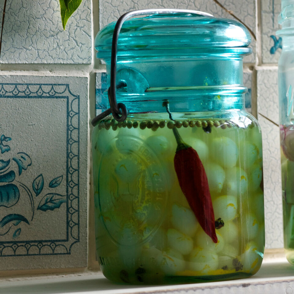 Die Gläser im Wasserbad im Backofen oder im Topf 30 Min. bei 90° einkochen. Danach abkühlen lassen und die Perlzwiebeln an einem dunklen, kühlen Ort aufbewahren. Vor dem Öffnen mindestens 3 Wochen durchziehen lassen.