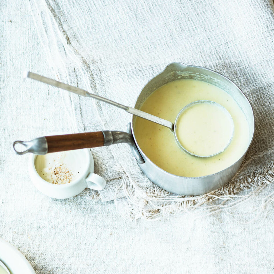 Die Lorbeerblätter entfernen, die Milch und die Hälfte der Sahne dazugeben und die Suppe fein pürieren. Soviel Brühe unterrühren, bis die gewünschte Konsistenz erreicht ist.