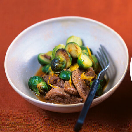Pfannengerührte Entenbrust mit Rosenkohl