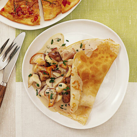 Frische Pilze in einem luftigen Pfannkuchen schmeicheln dem Gaumen und erinnern an lange Waldspaziergänge im raschelnden Herbstlaub.