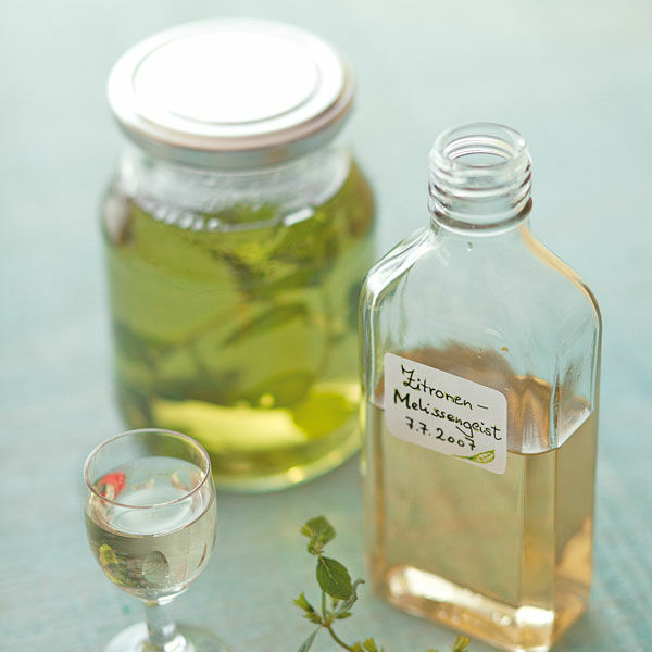 Die Minze waschen, trocken schütteln, die Blätter abzupfen und zerschneiden. Blätter in ein Schraubdeckelglas füllen, mit Alkohol übergießen, das Glas fest verschließen und in einen Topf stellen. Wasser bis zur Höhe des Alkohols einfüllen und bis unter den Siedepunkt erhitzen, ca. 15 Min. bei 70° halten (das Wasser darf nicht kochen). Dann das Glas aus dem Wasser nehmen und den Minze-Auszug abkühlen lassen.