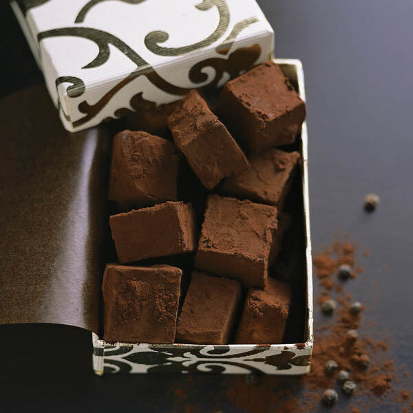 Zum Selbstessen oder Verschenken: Die scharfen Würfel werden aus Sahne, Schokolade und Butter gerührt und einem Hauch Pfeffer gewürzt.