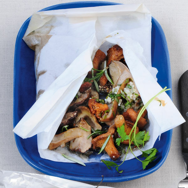 Hier werden die edelsten Schätze des Waldes eingetütet und schonend im Ofen gegart. Heraus kommen mediterran gewürzte Pfifferlinge und Steinpilze.