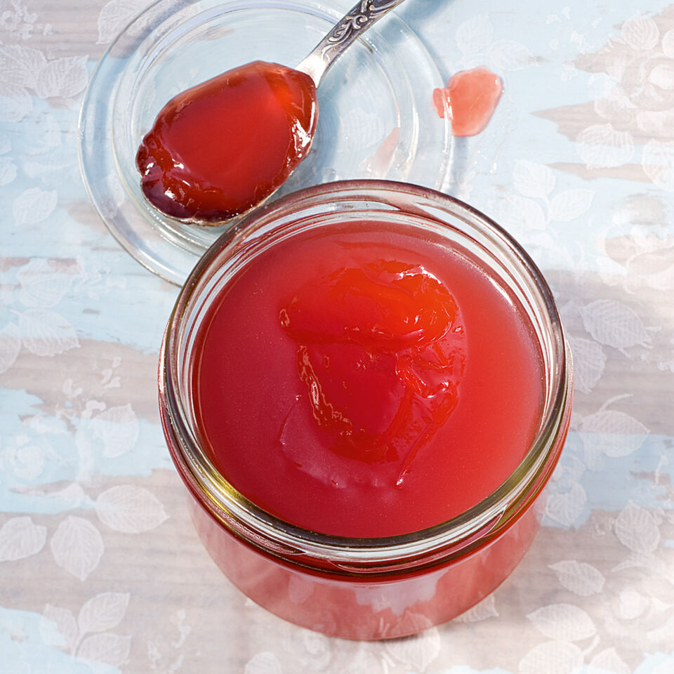 Pfirsichgelee mit Kakaobohnen