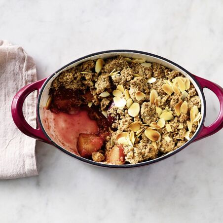 Den Crumble im Ofen (Mitte) ca. 30 Min. backen. Aus dem Ofen nehmen und warm oder abgekühlt servieren.