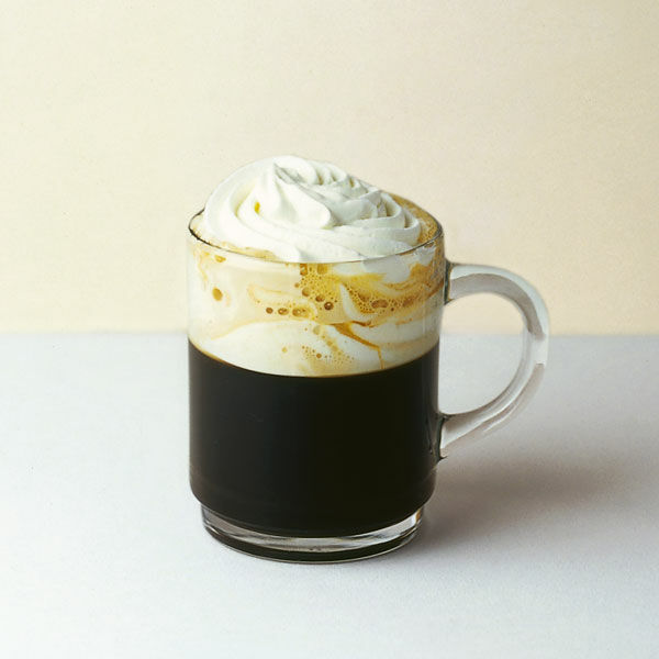 Den Kaffee zubereiten und die Sahne steif schlagen. Rum erwärmen. Kaffee auf 4 Gläser verteilen.