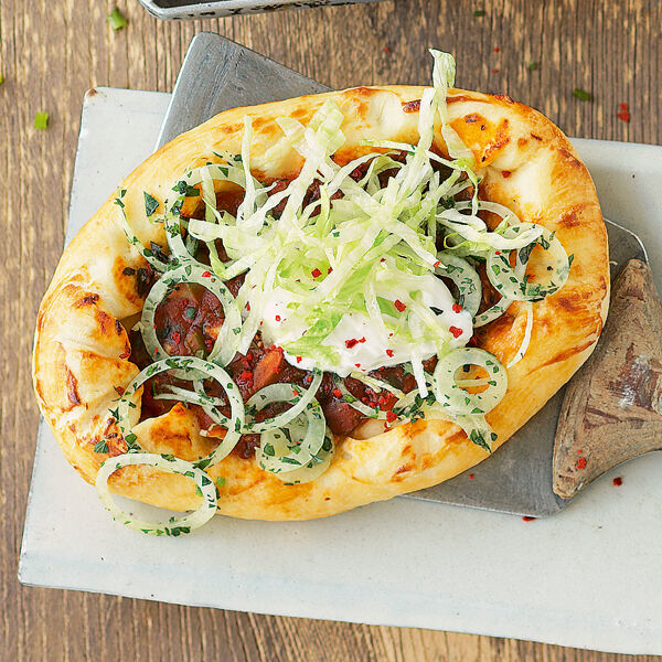 Diese Kombination von knusprigem Boden und würzigem Belag schmeckt nicht nur im Türkei-Urlaub gut.