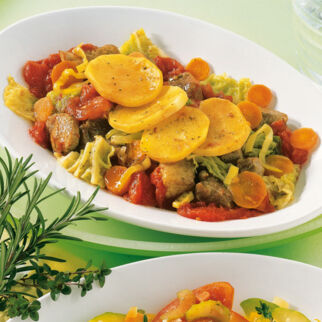 Grüne Bohnen und Tomaten verwandeln sich im Römertopf® zu einer vitaminreichen Gemüsebeilage. Frische rote Chili sorgt für die pikante Note.