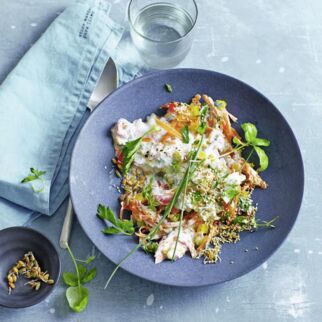 Die Frischkäsemischung auf Schalen verteilen, mit Gurken, Tomaten und Crunchy-Mix belegen. Die Sprossen und den übrigen Schnittlauch daraufstreuen. Wer’s gerne scharf mag, streut noch ein paar Chiliflocken aufs Müsli.
