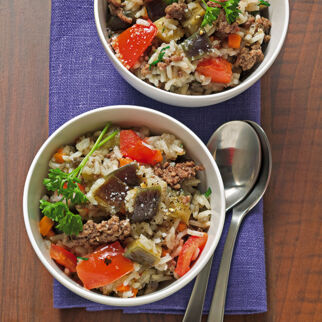 Den Reisklassiker Pilaw gibt es in vielen verschiedenen Varianten - hier einmal bodenständig mit Huhn und Gemüse.