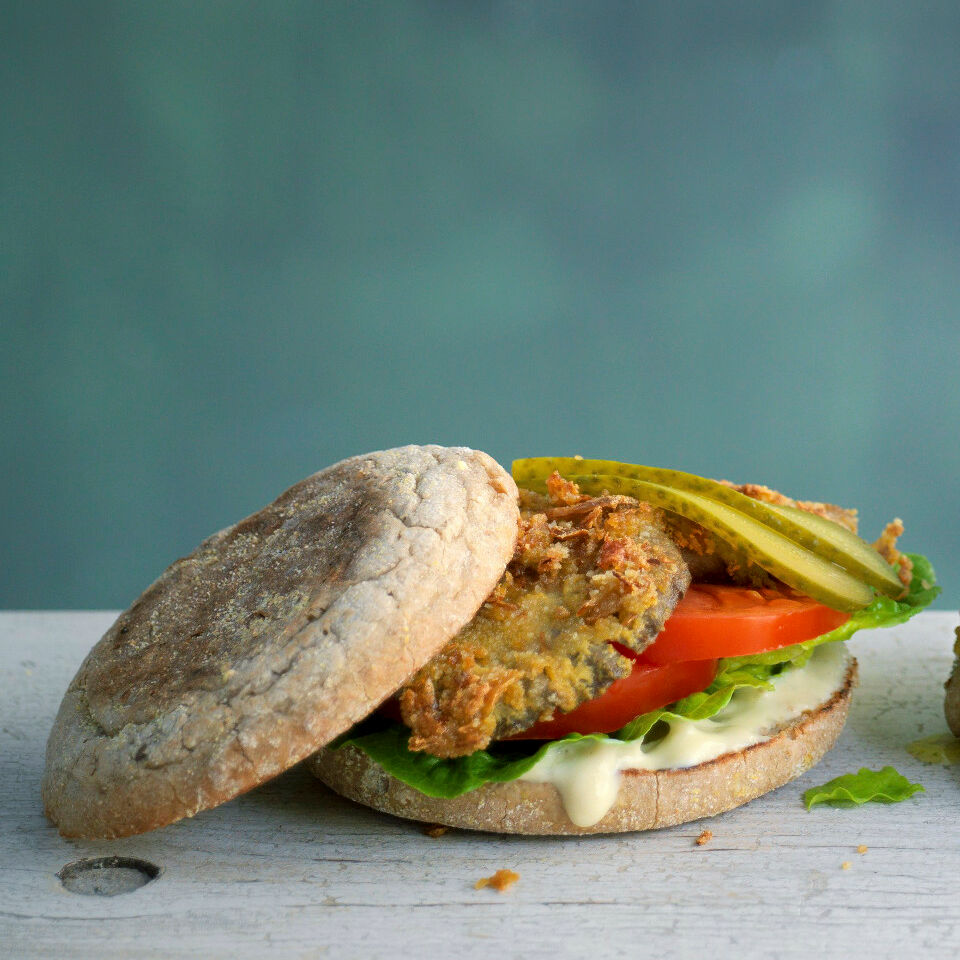 Brötchen aufschneiden und kurz im Ofen rösten. Salat waschen und trocken schütteln. Tomaten waschen. Tomaten und Gurken in Scheiben schneiden. Brötchen-Unterteile mit »Mayo« bestreichen. Mit Salat, Pilzen, Tomaten und Gurken belegen. Oberteile auflegen. Übrige Mayo hält sich gekühlt bis zu 5 Tage.