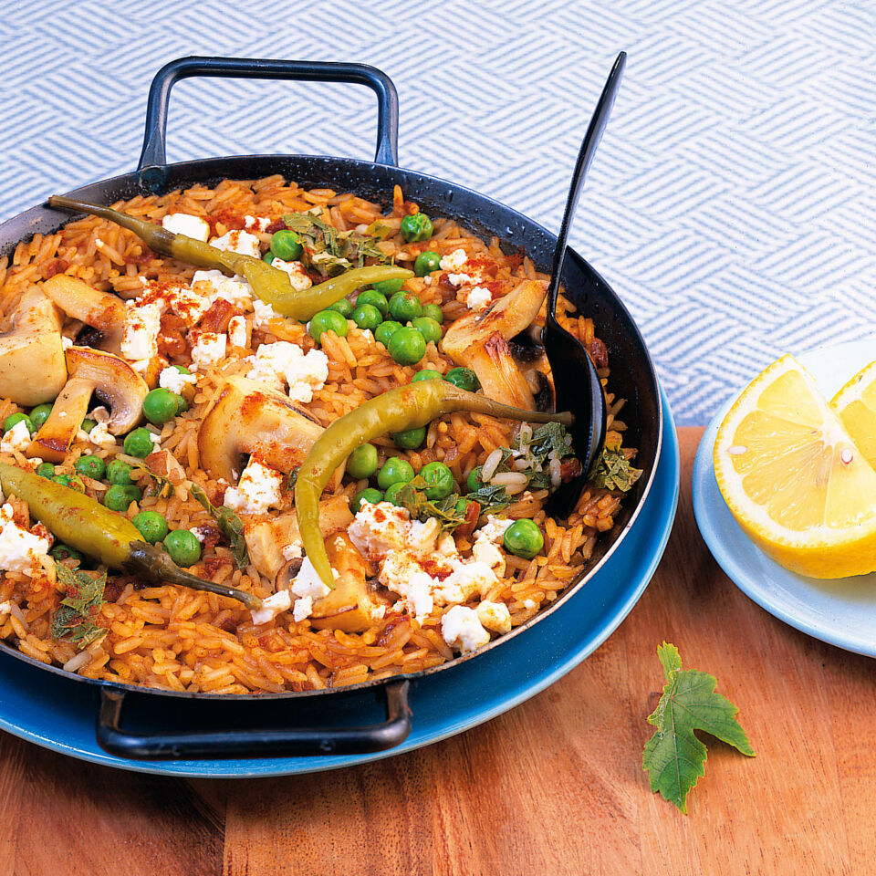Pilz-Paella mit Feta